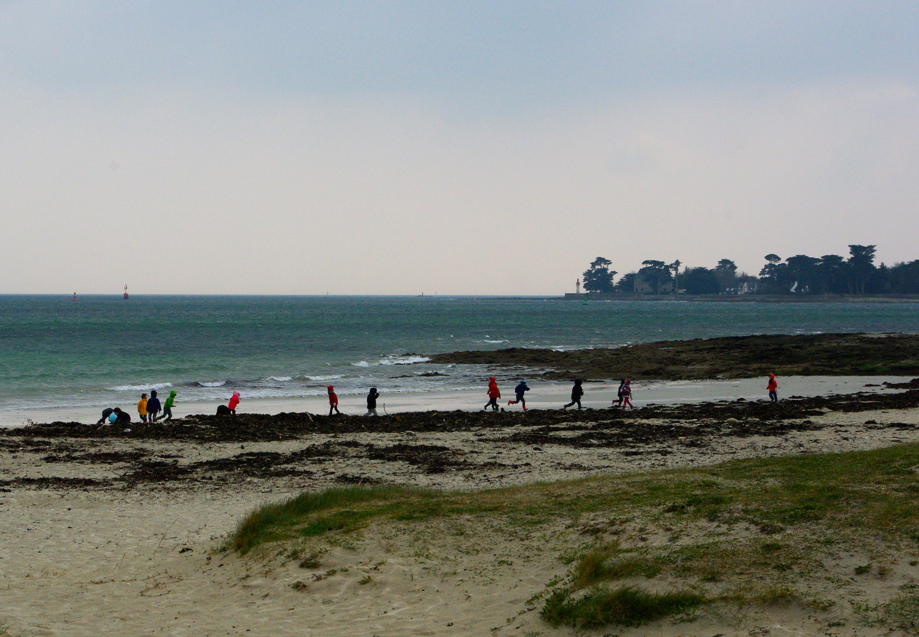 This time the playing children form a coloured line in the sand
