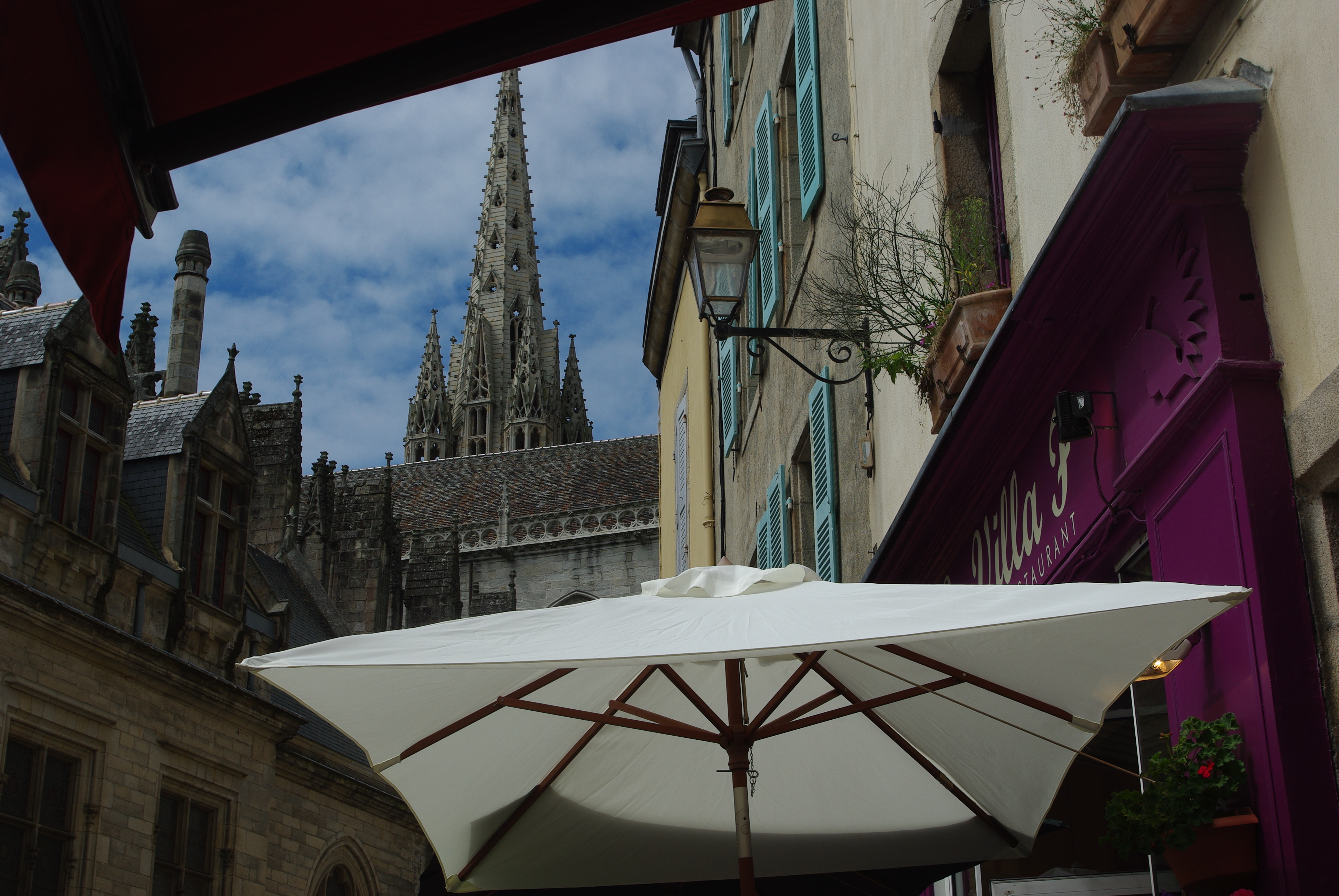 It’s the shape and the splash of bright colour with the beautiful building behind that somehow connected the medieval streets of Quimper with LA. We finally seem to be moving away from trees, anyway!