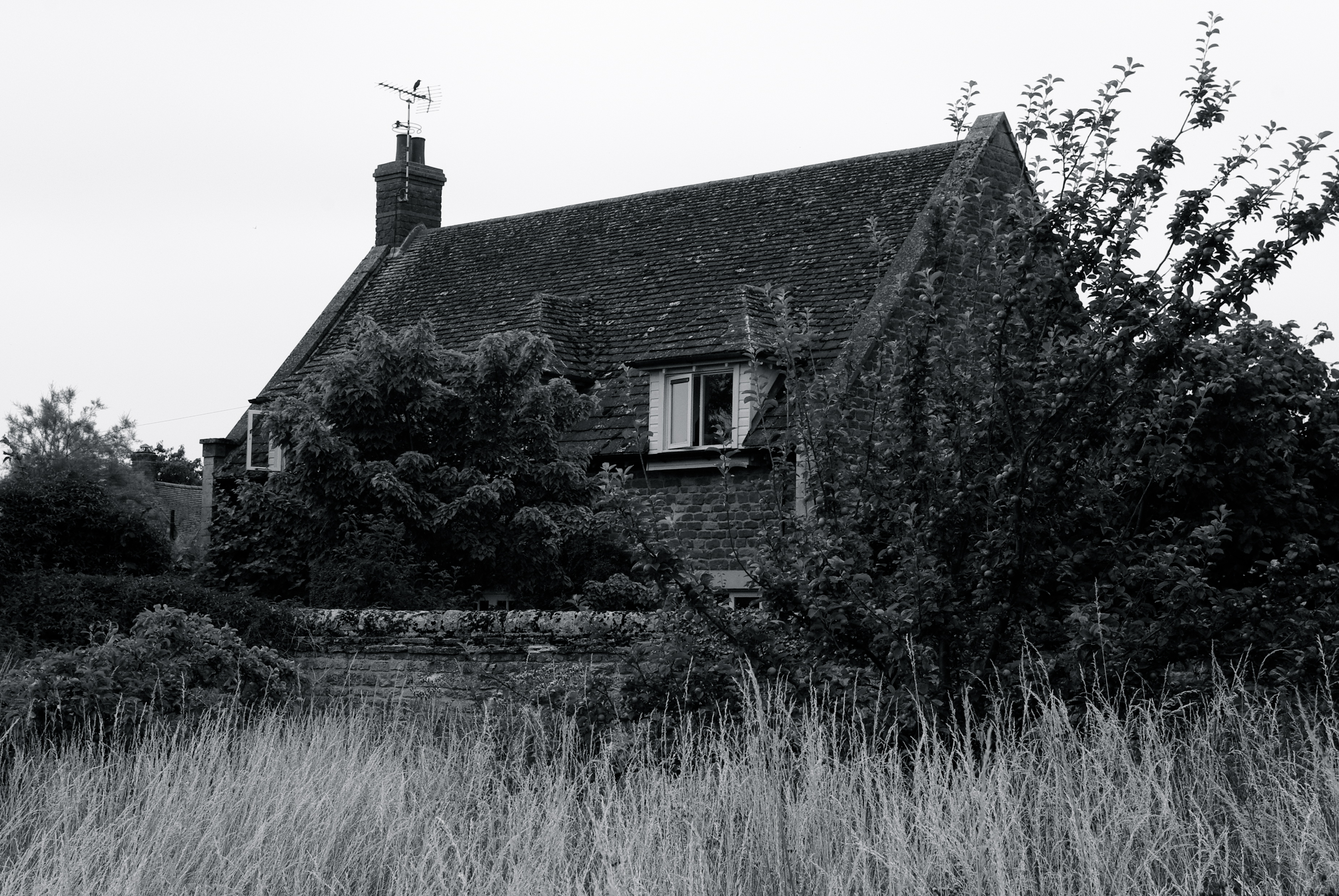 This entry was posted in Architecture, Black & White, Past it's best, Photography and tagged English countryside, grass, house, roof, stone wall, window. Bookmark the permalink.