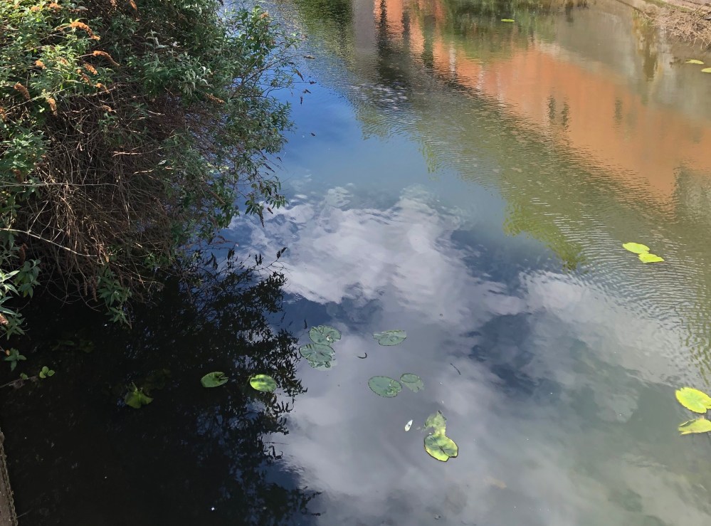 This entry was posted in Nature, Photography, Skyscape, Weird and wonderful and tagged brick wall, refelctions, river, River Soar, shrub, waterlilies. Bookmark the permalink.