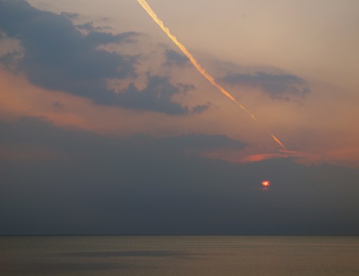 Photography, Seaside, Skyscape cloud, contrail, evening, horizon, sea, sunset 1 Comment Sally Ann