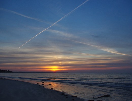 Photography, Seaside, Skyscape beach, Brittany, contrail, sea, sunrise Leave a comment Sally Ann