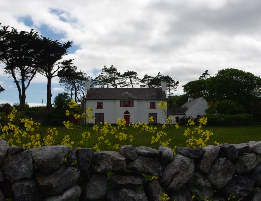 Architecture, Landscape, Photography clouds, cottage, flowers, Ireland, stone wall, trees 1 Comment Sally Ann