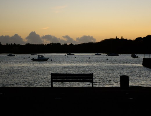 Photography, Seaside bench, boats, estuary, sunset, water Leave a comment Sally Ann
